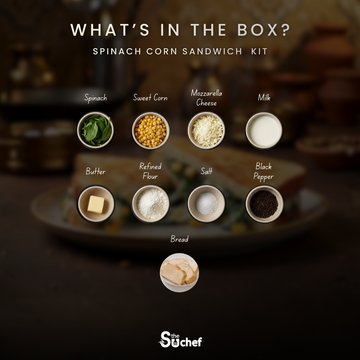 With our Spinach Corn Sandwich Kit, you get everything planned out for you, perfect quantities, easy steps, and a foolproof method. Along with the kit, we provide a clear written recipe and a step-by-step video guide, so you can make this sandwich confidently at home, even if you’re cooking it for the first time.